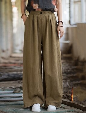 Per donna Finto cotone e lino Gamba larga Chinos Pantaloni Estivi Streetwear Essenziale Casual Lunghezza intera Vita media Semplice Tasca Comodo Comodità Inelastico Quotidiano All'aperto Streetwear