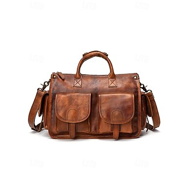 Borsa da viaggio da uomo in vera pelle effetto invecchiato, borsa da weekend multicolore di grande capacità con molteplici tasche e tracolla regolabile, ideale per viaggi di lavoro, viaggi e tempo