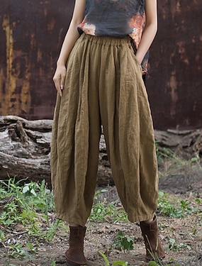 Per donna Pantaloni in cotone e lino Chinos Pantaloni Estivi Culotte Vacanza Streetwear Essenziale Lunghezza intera Vita media Semplice Coulisse Tasca Comodo Comodità Inelastico Quotidiano All'aperto