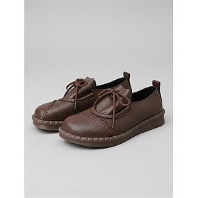 Ballerine da donna marroni in pelle, calzata ampia, con lacci – scarpe comode e morbide per camminare, con suola flessibile antiscivolo, scarpe casual e comode per tutti i giorni, ideali per viaggiare