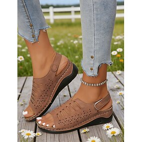 "sandali bassi da donna in similpelle marrone con cinturino regolabile - scarpe estive casual da indossare tutti i giorni e per le vacanze