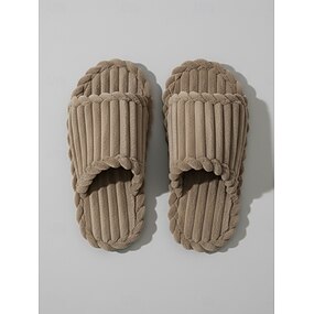 Pantofole estive da donna in peluche rosso scuro con punta aperta: ciabatte morbide e traspiranti con soletta imbottita intrecciata, ideali per la casa, la camera da letto e per il comfort quotidiano.