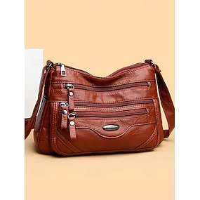Per donna Borsa a tracolla Borse a Spalla Pelle PU Ufficio Festa della Mamma Casual Quotidiano Cerniera Grande Capacità Leggero Tinta unica Grigio scuro Vinaccia Tessuto almond