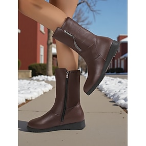 stivaletti da donna in similpelle marrone – stivaletti con tacco basso e fibbia con cerniera laterale per uscite autunnali, passeggiate in campagna e uso quotidiano