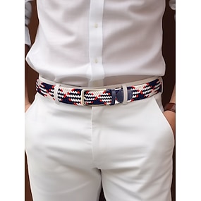 cintura elastica intrecciata da uomo – design intrecciato multicolore con punta in pelle e fibbia in metallo, stile casual e da golf, vestibilità regolabile per jeans e pantaloni, perfetta per lo sport e l'uso quotidiano