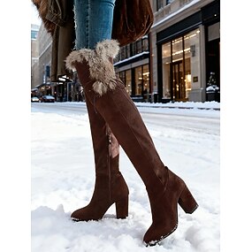 stivali da donna sopra il ginocchio in finta pelle scamosciata marrone con rifiniture in pelliccia sintetica: calzature invernali comode ed eleganti per un calore extra