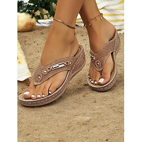 sandali infradito con zeppa e plateau da donna, sandali estivi da passeggio in spiaggia con plateau imbottito