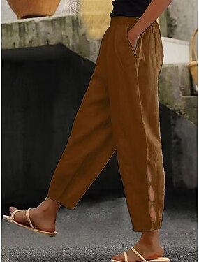 Per donna Misto cotone Chinos Pantaloni Estivi Moda Streetwear Lunghezza alla caviglia Vita Alta Semplice Tasca Fascia Elastica Comodo Morbido Confortevole Micro-elastico All'aperto Streetwear product tag