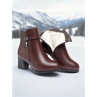 stivaletti neri da donna con fodera in lana – caldi stivali invernali con tacco in similpelle per il freddo, per l'ufficio e per outfit casual