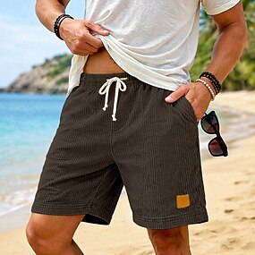 Per uomo Pantaloncini Estivi Shorts da Spiaggia Pantaloncini casual Pantaloncini di velluto a coste Coulisse Elastico in vita Tinta unica Comodità Traspirante Lunghezza al ginocchio Quotidiano