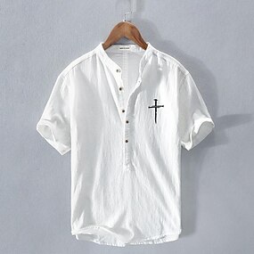 Per uomo Camicia in cotone e lino Semplice Vacanza Bianco Manica Corta Colletto alla coreana Estate Abbigliamento