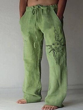 Per uomo Pantaloni di Lino Pantaloni Pantaloni Larghi Pantaloni da Spiaggia Coulisse Tasca Semplice Comodità Traspirante Lunghezza intera Quotidiano Vacanza Elegante Bianco Verde militare