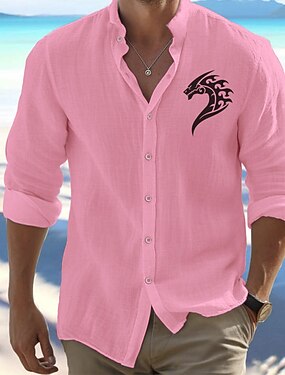 Per uomo Camicia Camicia da Spiaggia Camicia con Bottoni Vichingo All'aperto Vacanza Nero Bianco Rosa Arancione Manica Lunga Colletto Mao Primavera & Autunno Abbigliamento Stampato