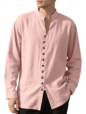 Per uomo Camicia Camicia di lino Camicia casual Camicia con Bottoni Camicia di cotone Semplice Vacanza Camicia hawaiana Nero Bianco Rosa Viola Manica Lunga Colletto alla coreana Primavera Autunno