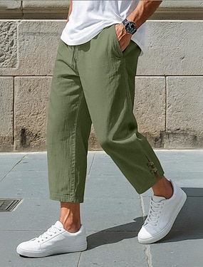 Per uomo Pantaloni di Lino Pantaloni Pantaloni Estivi Pantaloni Larghi Pantaloni Corti Coulisse Elastico in vita Tinta unica Semplice Comodità Traspirante Lunghezza alla caviglia Casuale Quotidiano