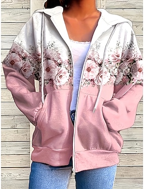 Per donna Felpe con cappuccio Floreale Grafico Moda Casual Manica Lunga Con Cappuccio Top Regolari Streetwear Abbigliamento Quotidiano Cerniera Tasca Stampato Rosa chiaro Viola chiaro Azzurro