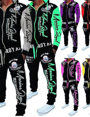 Per uomo Tuta da 2 pezzi Felpa con cappuccio Lounge Set di tute da ginnastica con tasca Stampato Completo Abbigliamento Primavera Giallo Rosa Palestra Allenamento Corsa Vita Alta Leggero Di tendenza