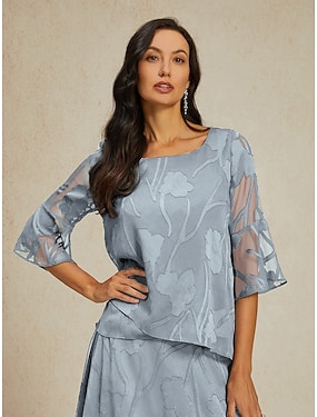 Per donna Camicia di Pizzo Blusa Top Eleganti Top in chiffon Orlo asimmetrico Tinta unica Floreale Elegante Casual fluente Manica 3/4 Manica a Campana Scollo a Barca Quotidiano Lavoro Ospite di nozze