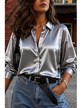 Per donna Elegant Elegante Top in raso Blusa Semplice Elegante Quotidiano Manica Lunga Scollo a V Top Regolari Nero Bianco Grigio Autunno