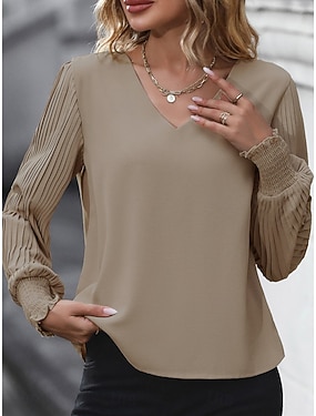 Per donna Camicia Blusa Tinta unica Essenziale Casual Manica Lunga Scollo a V Top Regolari Quotidiano Rosa Cachi Azzurro Autunno Inverno
