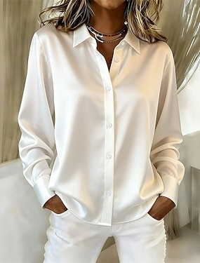 Per donna Camicia Elegant Elegante Top in raso Senza schiena Semplice Attivo Elegante Manica Lunga Colletto a Camicia Top Regolari Ferie Uscire Nero Bianco Cachi Primavera Autunno