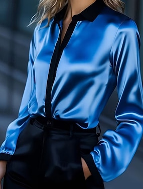 Per donna Camicia Elegant Top in raso Blusa Patchwork Bottoni Semplice Elegante Manica Lunga Colletto a Camicia Top Regolari Quotidiano Ferie Uscire Blu Oro Verde Grigio Estate Primavera