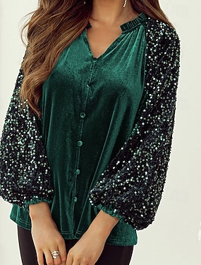 Capodanno Per donna Top con paillettes Paillettes Elegante Festa Moderno Scollo a V Top Regolari Festa serale Abbigliamento da sera Blu Rosso Marrone chiaro Viola Marrone Primavera, Autunno, Inverno