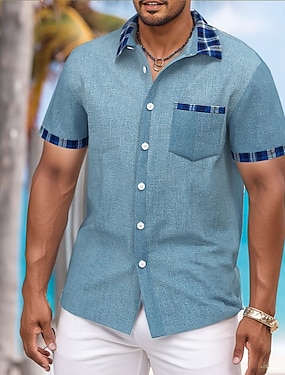 Per uomo Fantasia geometrica A quadri Graticolato camicia di lino Camicia estiva Camicia con bottoni Manica corta Moda Casual Da mare Per eventi Abbigliamento mare Estate Primavera Collo ripiegabile