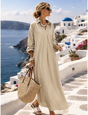 Per donna Abito Lungo Maxi Abito Finto cotone e lino Abito a Tubino Vestito Casual Elegante Essenziale Casual Quotidiano Lavoro Vacanza Vestibilità regolare Semplice Senza Maniche Colletto a Camicia