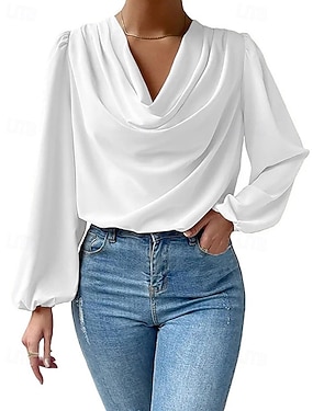 Per donna Camicia Elegant Elegante Top in raso Arricciato Patchwork Drappeggiato Tinta unica Semplice Elegante Vintage Quotidiano Manica Lunga Manica a Lanterna Asimmetrico Top Regolari Quotidiano