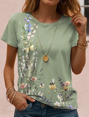 Per donna Maglietta Stampato Floreale Grafico Piante Vintage Elegante Classico Manica Corta Girocollo Top Regolari Quotidiano Viola Verde Bianco sporco Grigio Estate