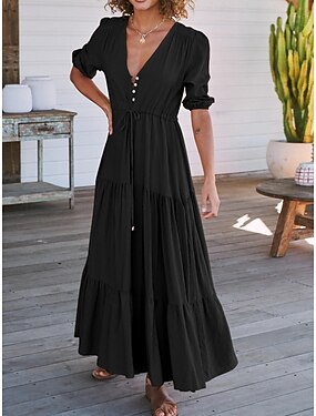 Per donna Vestito maxi Abito casual Vestito svasato Abito linea A Informale Da mare Giornaliero Standard Liscio Manica corta A V Nero Blu marino Fucsia Verde Estate