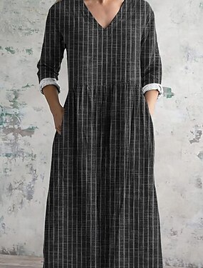 Per donna Abito maxi Finto cotone e lino Vestito a caftano Vestito Casual Abito in cotone Essenziale Classico Casual Quotidiano All'aperto Vacanza Vestibilità comoda Semplice Manica Lunga Scollo a V