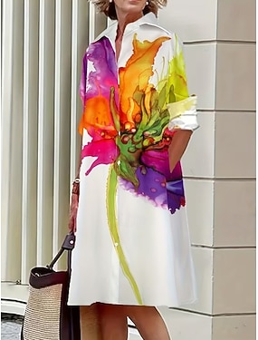 Per donna Abito Midi Vestito T-Shirt Vacanza Compleanno Casual Spiaggia Uscire Vestibilità regolare Grafico Astratto Manica Lunga Bavero Blu Bianco Rosa Verde Estate Primavera