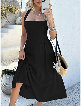 Per donna Abito Midi Abito Bianco Abito con Collo Allacciato Elegante Moda Moderno All'aperto Vacanza Uscire Vestibilità regolare Semplice Senza Maniche All'americana Blu Nero Bianco Rosa Estate