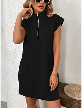 Per donna Mini Abito Vestito T-Shirt Abito Estivo Casual Quotidiano Vestibilità regolare Semplice Manica Corta Bavero Blu Nero Bianco Fucsia Estate