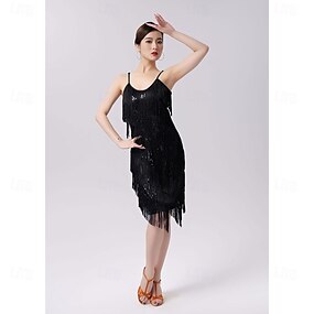 Balli latino-americani Abito Nappa Paillettes Con lustrini Per donna Prestazioni Addestramento Senza maniche Alto Poliestere