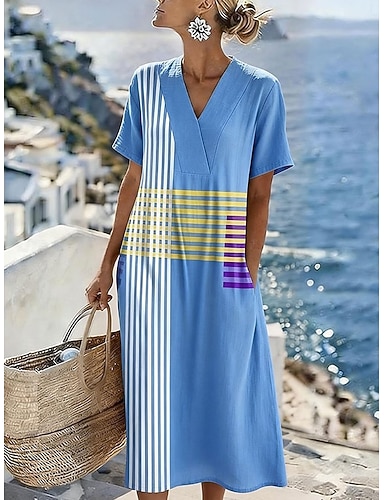 Per donna Abito maxi Abito a trapezio Casual Quotidiano Vestibilità regolare Geometrico Manica Corta Scollo a V Rosa Azzurro cielo Marrone Verde Estate Primavera