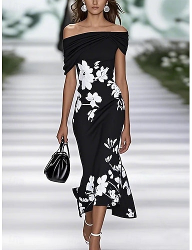 Per donna Abito maxi Tubino Abito con balze Casual All'aperto Uscire Vestibilità regolare Floreale Manica Corta Senza Spalle Blu Nero Verde Estate Primavera