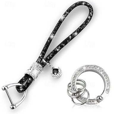 1 portachiavi di lusso per auto con strass, anti-smarrimento, da donna, con fibbia in argento, portachiavi per auto, portachiavi per telefono, accessori scintillanti