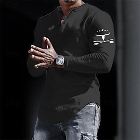 Per uomo Maglia Henley Maglietta Camicia a Maniche Lunghe Manica Lunga Henley Estate Autunno Motivo Cervo Moda Designer Moda Vintage ▾ Vacanza Streetwear Uscire Grigio scuro Nero Bianco Maglietta Top