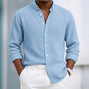 Per uomo Camicia Camicia a nido d'ape Camicia casual Camicia con Bottoni Nero Bianco Vino Blu marino Marrone Manica Lunga Semplice Bavero Casuale Quotidiano Abbigliamento Moda Streetwear Elegante