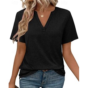 Per donna Maglietta Semplice Moda Classico Casual Manica Corta Scollo a V Top Regolari Quotidiano Uscire Weekend Nero Bianco Rosa Viola Verde Estate Primavera
