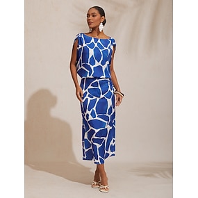 abito lungo in raso aderente con stampa geometrica a blocchi di colore per le vacanze