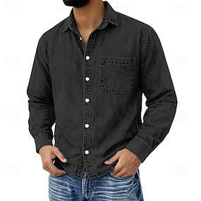 Per uomo Camicia Camicia casual Camicia con Bottoni Camicia 100% cotone lavaggio acido Camicia lavata con acido Blu Nero Verde chiaro Borgogna Blu marino Manica Lunga Semplice Colletto a Camicia