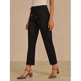 pantaloni da donna slim fit a sigaretta con cerniera frontale, coulisse in vita, primavera autunno, casual, lavoro