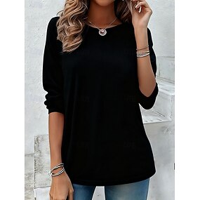 Per donna Maglietta Stampato Semplice Vintage Elegante Classico Manica Lunga Girocollo Top Regolari Quotidiano Blu Nero Bianco Giallo Rosa Primavera Autunno Inverno