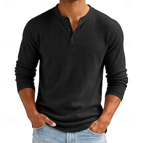 Per uomo Maglietta Maglietta a Maglia a Coste Manica Lunga Henley Primavera Autunno Inverno Semplice Striscia di Fossa Moda Designer Essenziale Caldo Puro Casuale Vacanza Streetwear Grigio scuro