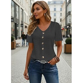 Per donna Camicia traforata Top traforato Bottoni Quotidiano Manica Corta Scollo a V Top Regolari Casuale Quotidiano Spiaggia Verde salvia Nero Bianco Rosa Azzurro cielo Estate