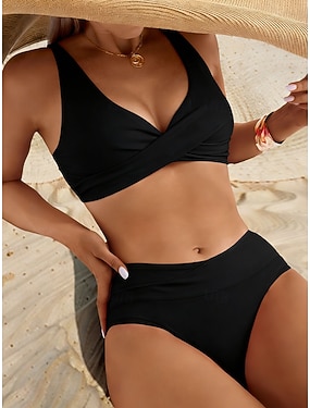 Per donna Costumi da bagno Bikini Due pezzi Vita alta Costume da bagno Snello Senza schiena Vacanza Abbigliamento da Spiaggia Tinta unica Scollo a V Senza Maniche Costumi da bagno